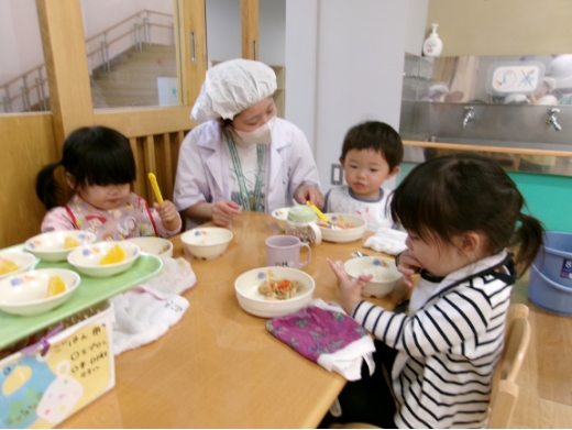 帰りの身支度を済ませ、クラスで先生に絵本を読んでもらいながら、一日を振り返りゆったりとした時間を過ごします。