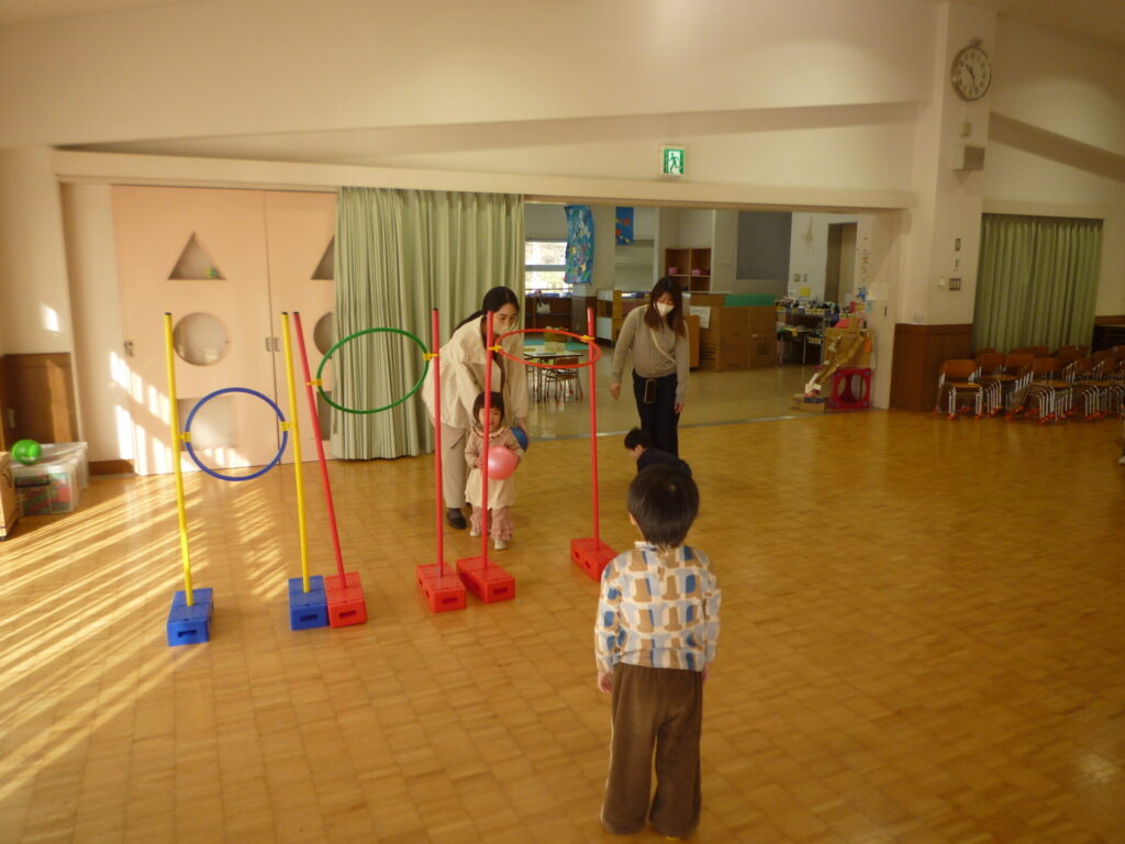 らっこ組のお友だちも普段なかなか来ないホールや預かり保育室に大興奮でボールやフラフープを使い遊んでいました。