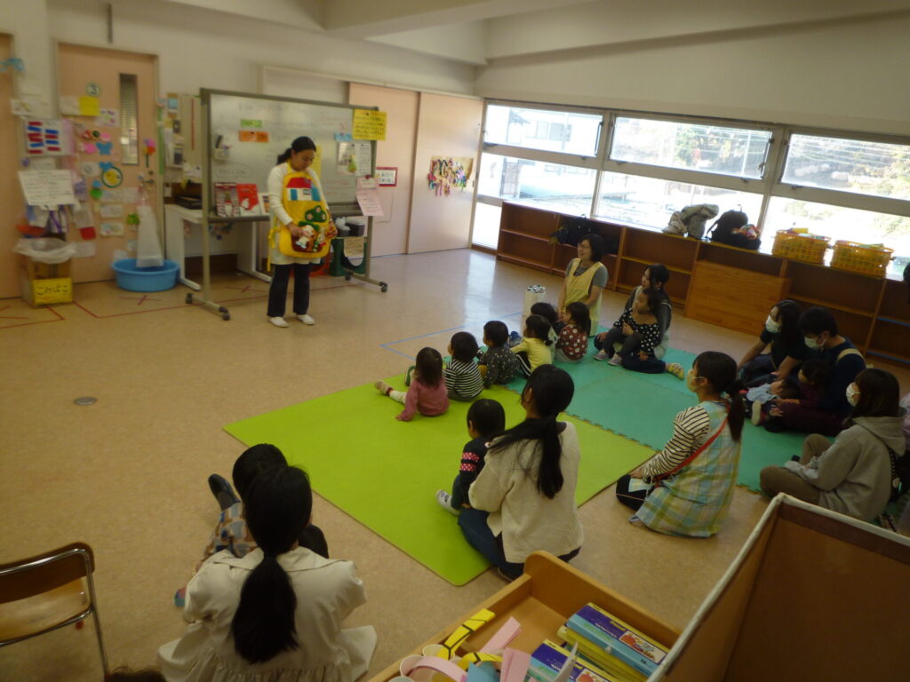 12月8日(月)に行われたぷちぴよぐる~ぷの様子をお伝えします。当日は6組の親子の皆様にご参加いただきました。ありがとうございます。今回は自由遊びの中で、1歳児クラスのらっこ組さんも遊びに来てくれました。