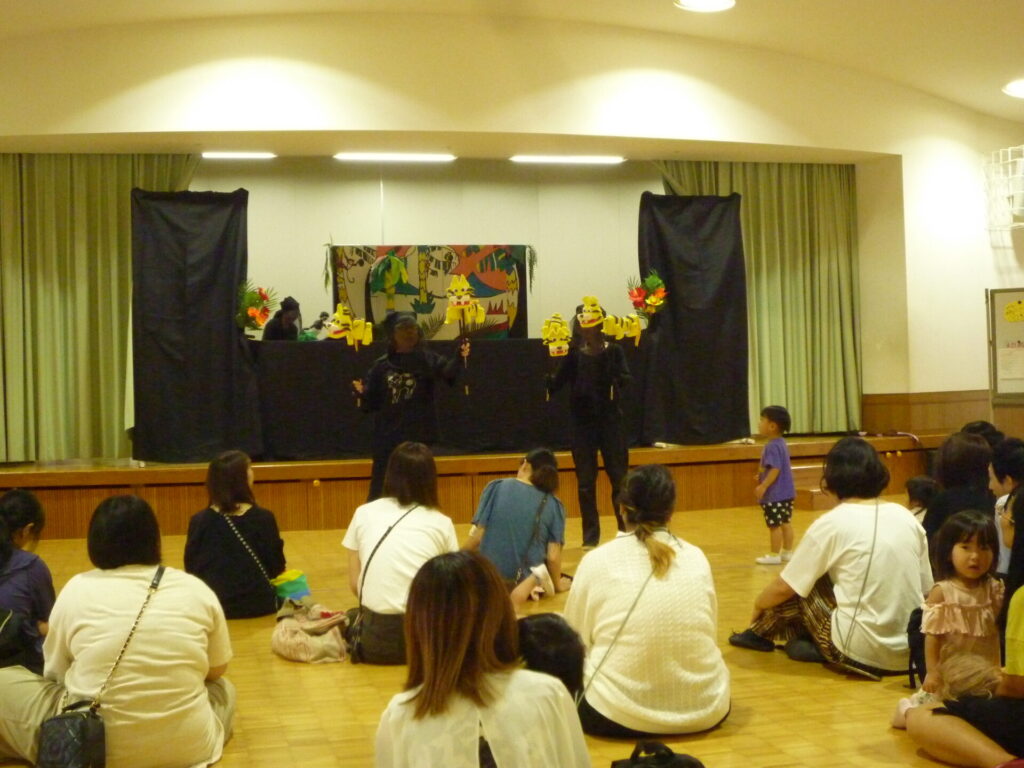9月12日(金)に「劇団もこもこ」の方々による、人形劇「ちびくろさんぼ」をホールで鑑賞しました。未就園児のお友だちも参加させていただき、当日は19組の方のご参加がありました。遊びに来ていただいた親子の皆様ありがとうございました。