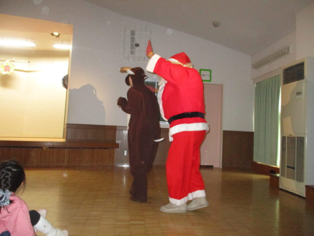 1歳児のらっこ組さん、2歳児のいるか組さんもみんな大喜び!!メリークリスマス