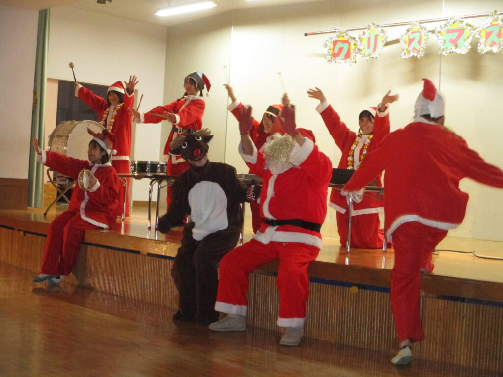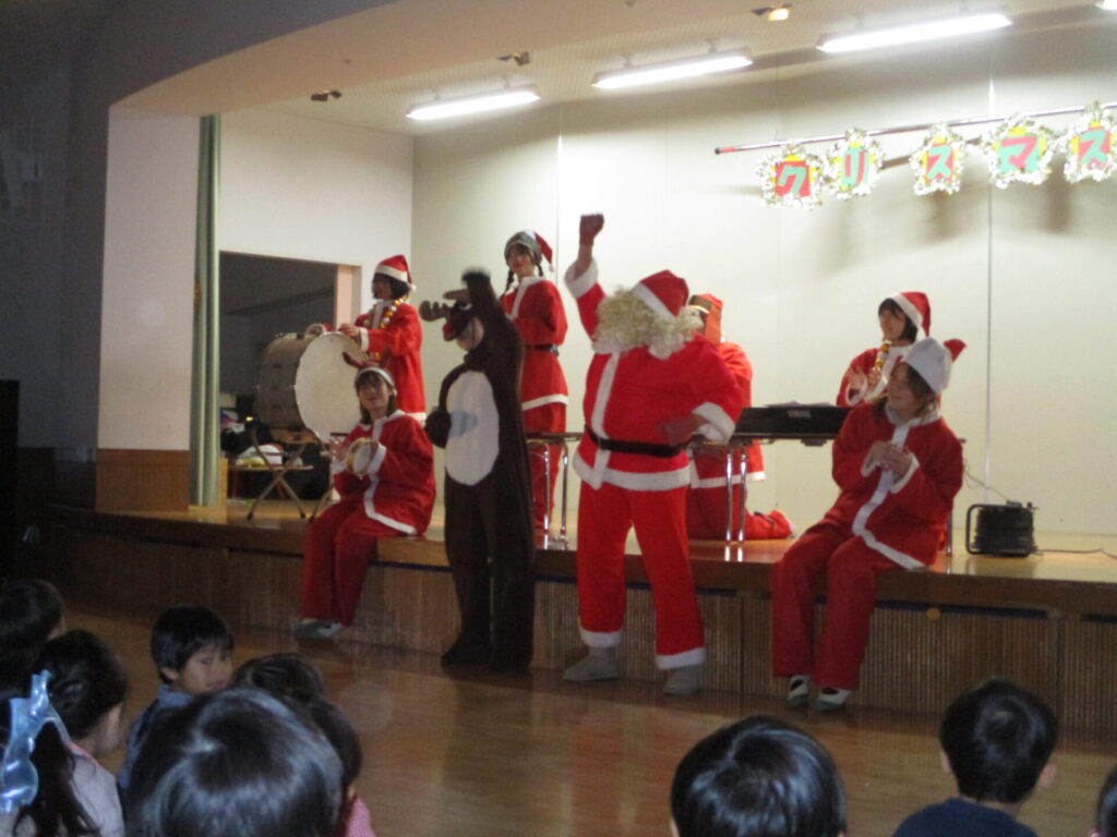 劇が終わるとブレーメンの音楽隊がサンタVerで登場!赤鼻のトナカイやサンタが町にやってくる等を演奏し、子どもたちも知っている曲はみんなで大合唱!!