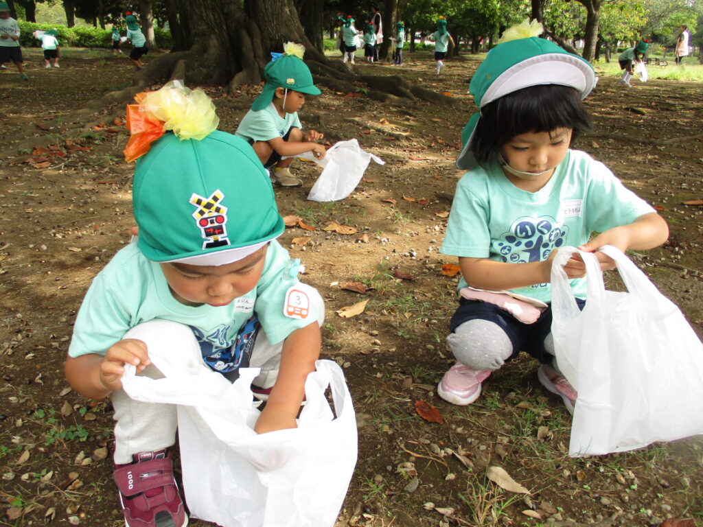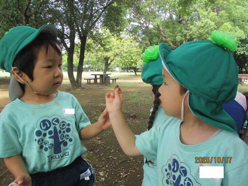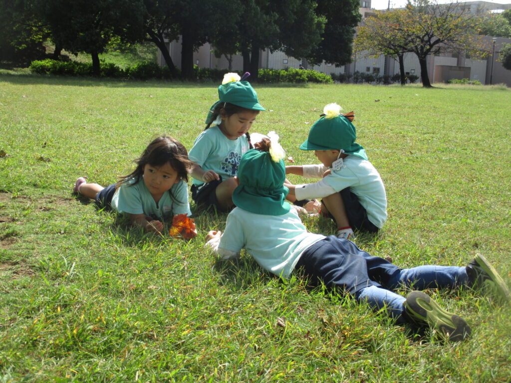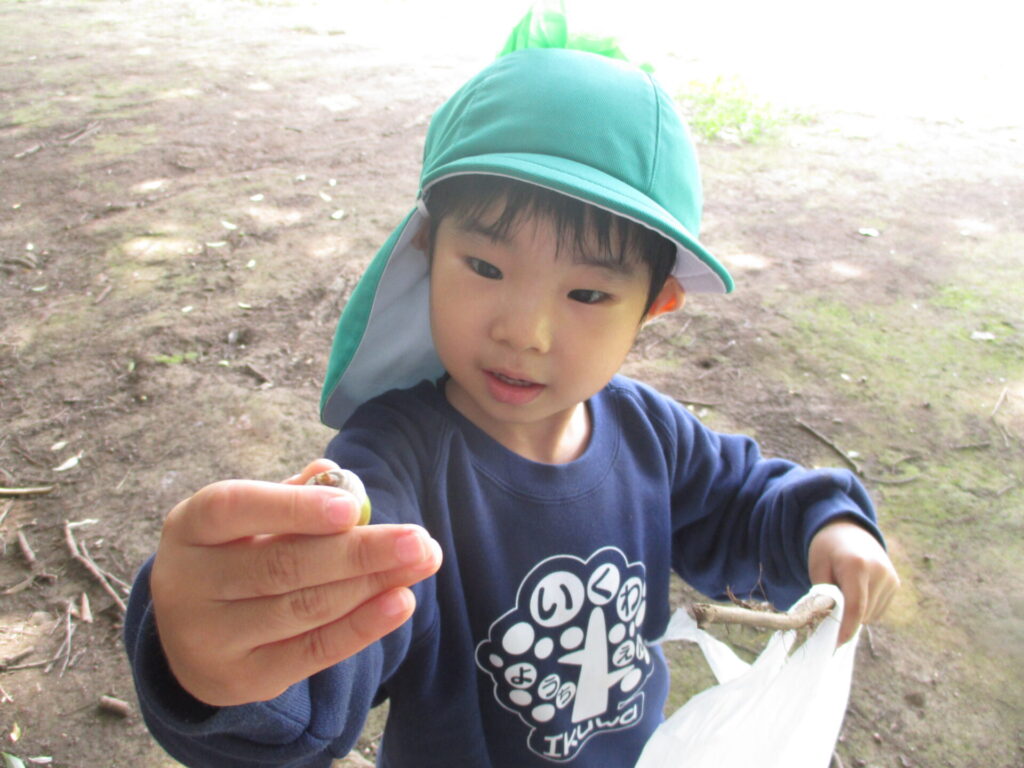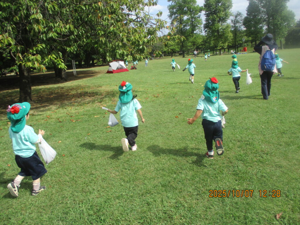 公園で集合写真撮影後、みんなでどんぐり拾いをしました。