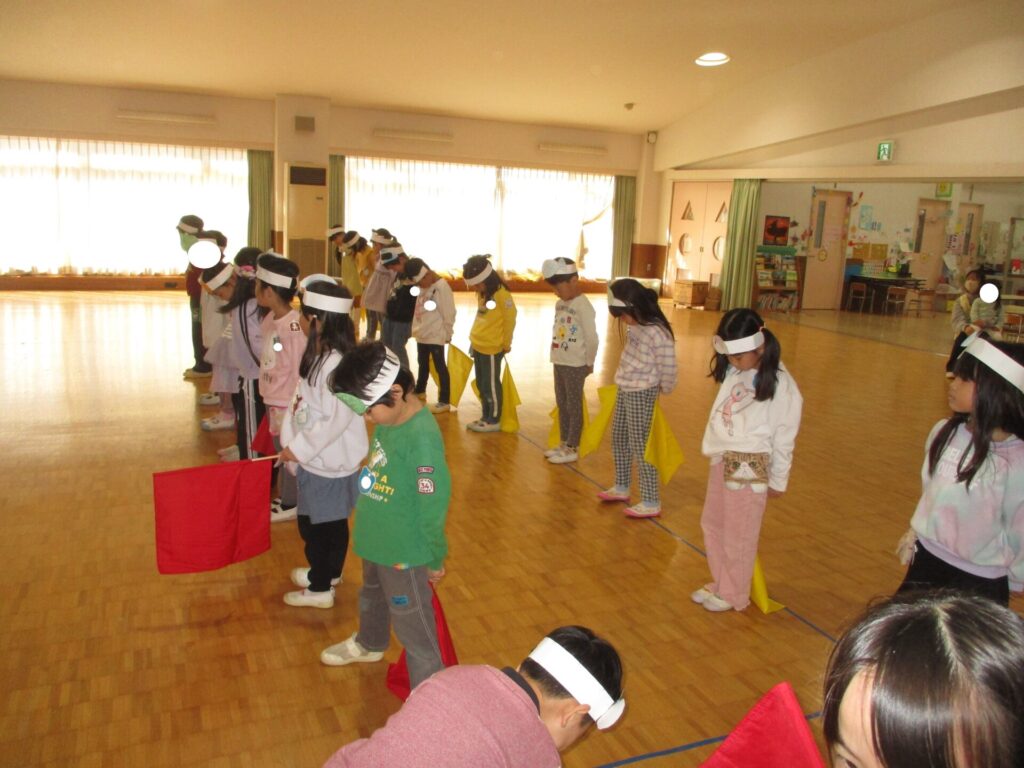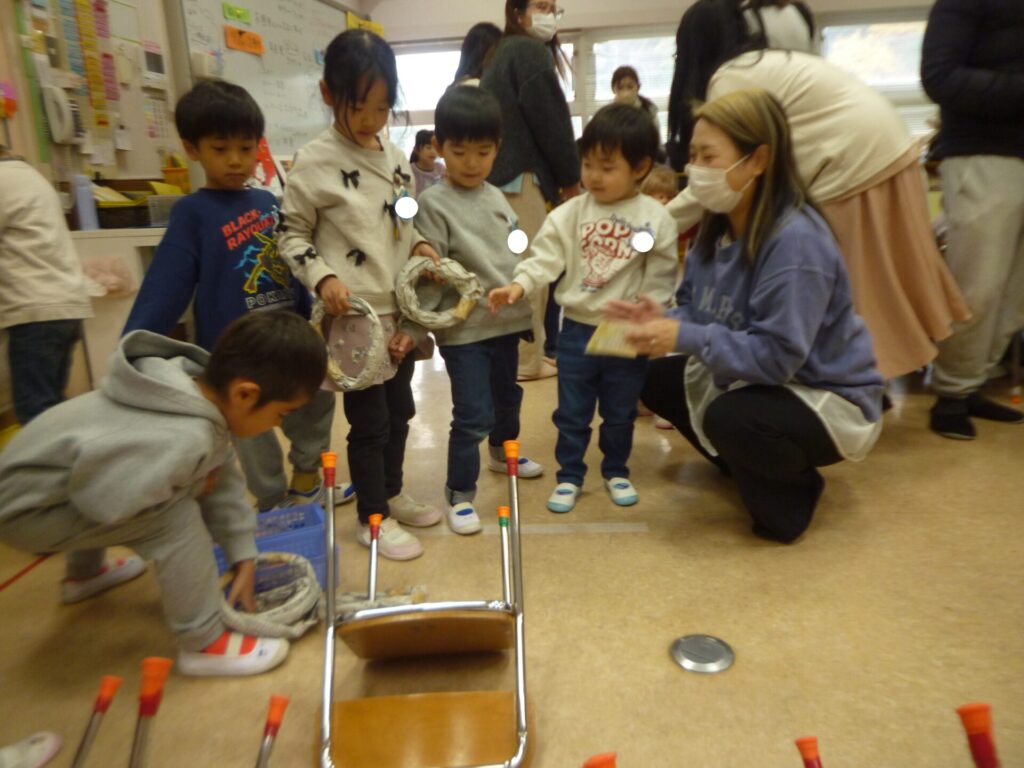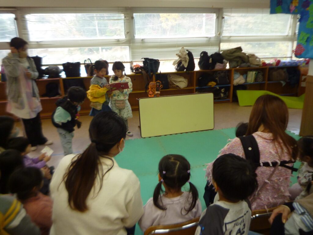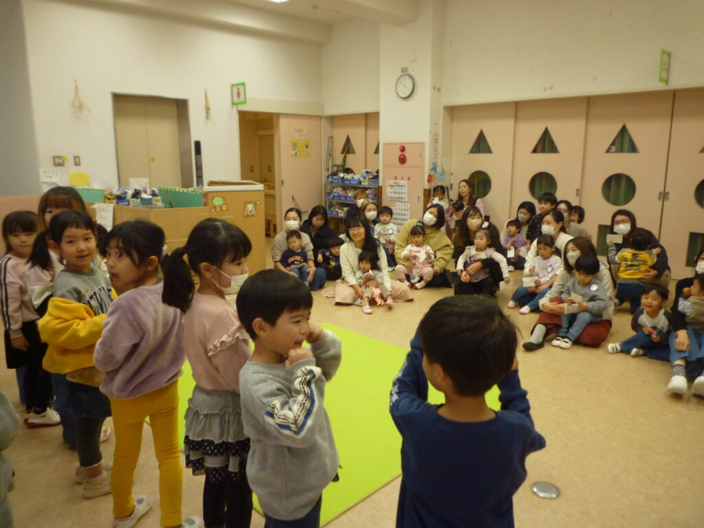 今週の12/9(火)と11(木)年長組のほし組、ひかり組さんと未就園児クラスのひよこグループのお友達と交流を行いました。