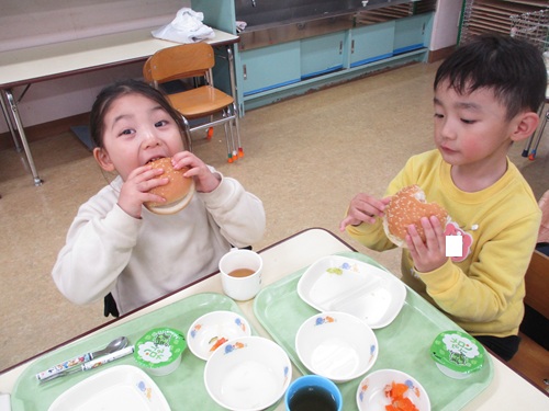 そんな今日のメニューは年長さんのリクエストメニュー、ハンバーガー!