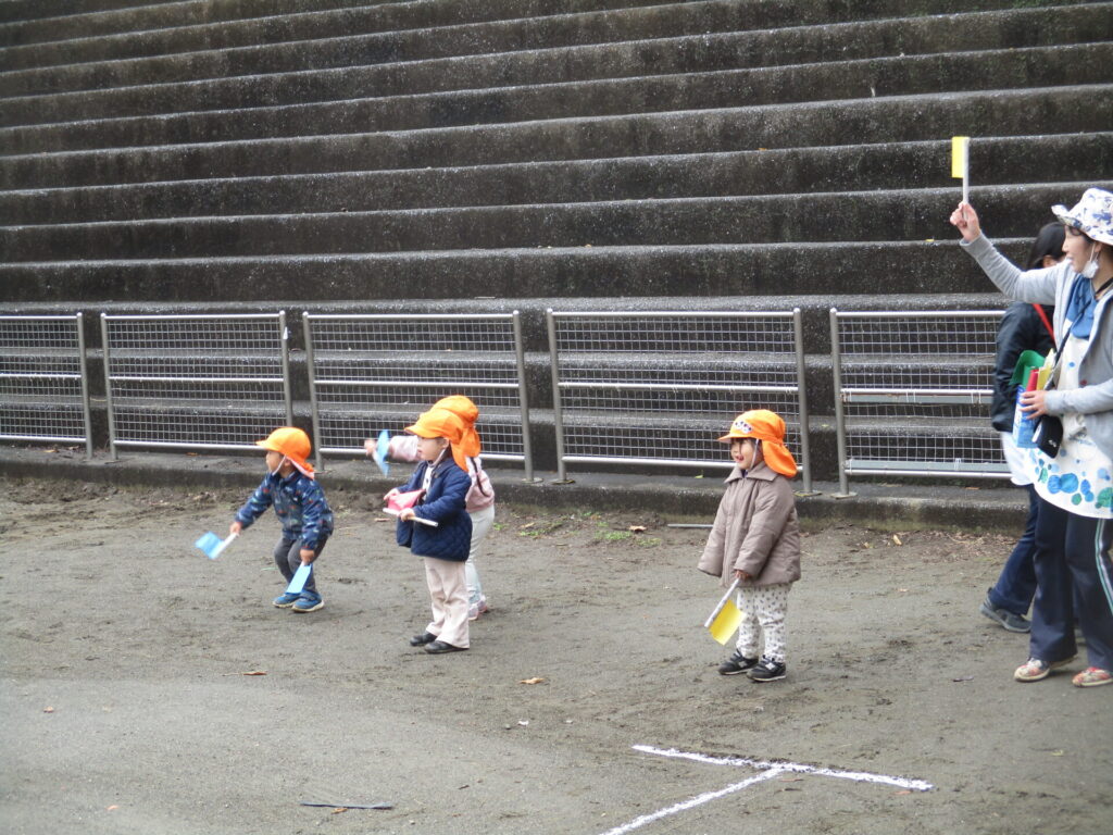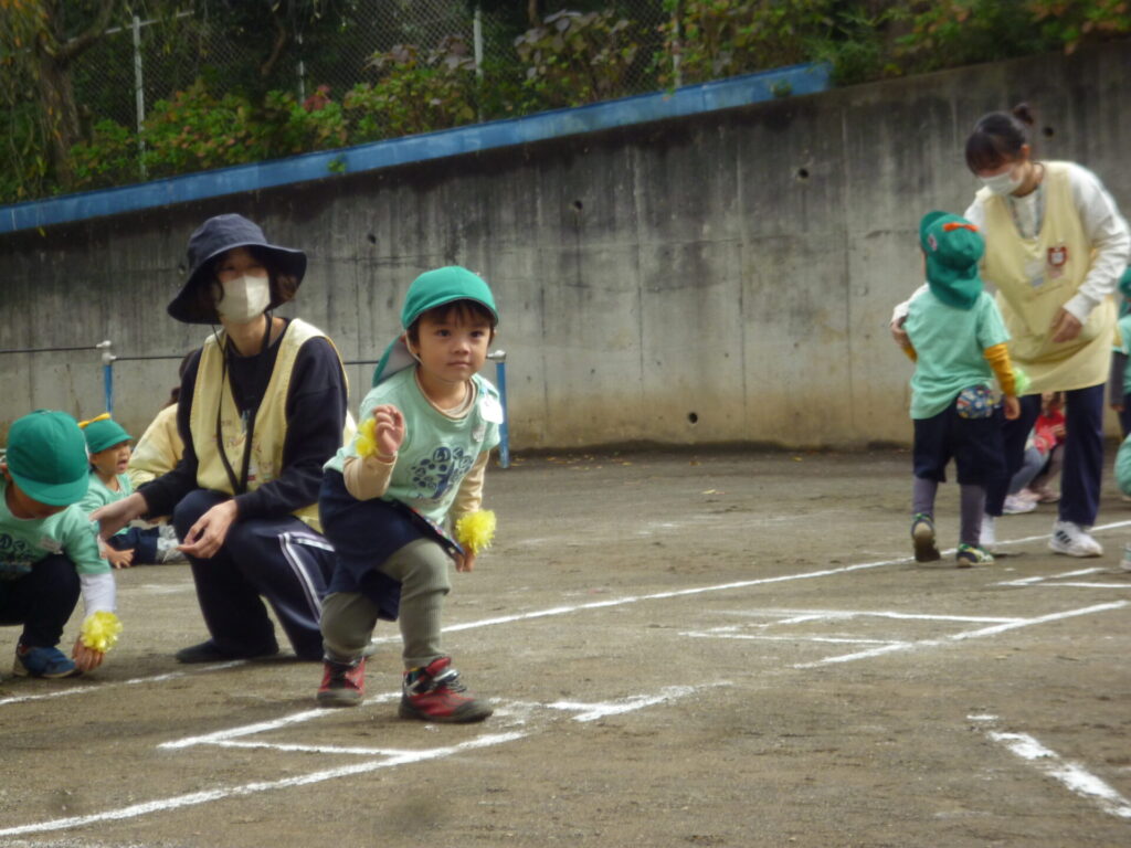 本日は学級閉鎖で2クラスの子どもたちがいない中でしたが、園庭で運動会ごっこを行いました。年少組はダンスとかけっこ。よ~いのポーズが決まっています!!