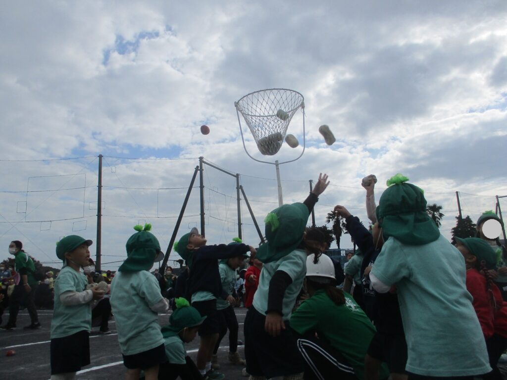 玉入れは親子で一緒に行ない、パパやママに抱っこしてもらってとても嬉しそうでした😊
