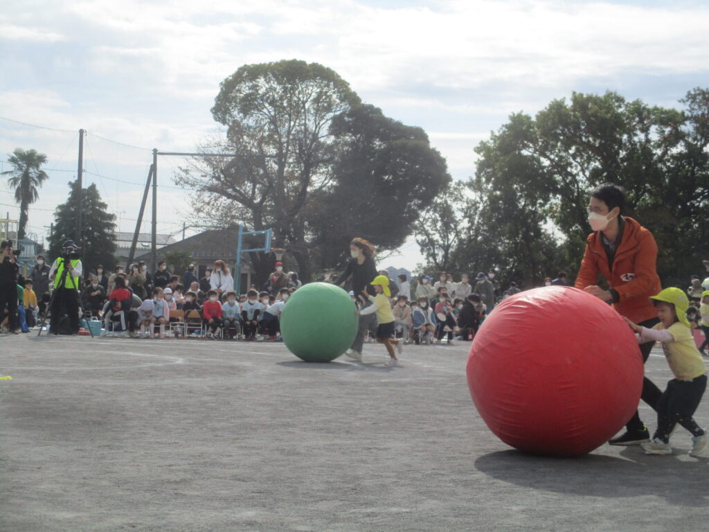 年中さんは、かけっこ、パラバルーン、親子で大玉転がし!