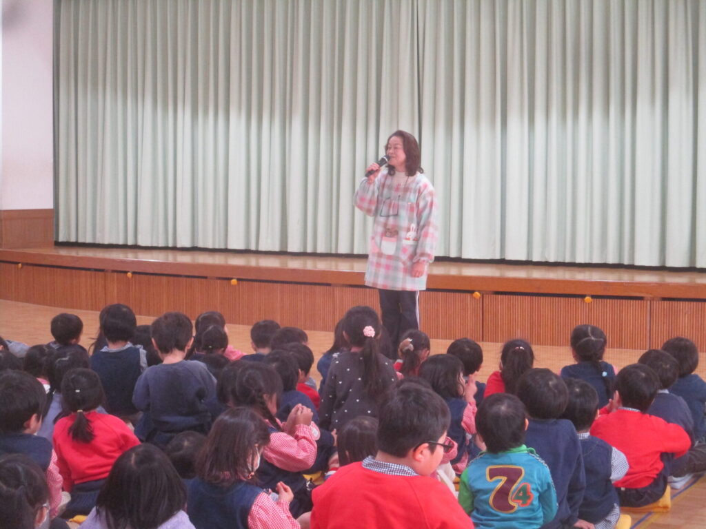 園長先生からは「早寝、早起き」「おうちのお手伝い」「『何して遊ぼうかな?!何しようかな?!』」自分で考えてみよう!」等々のお話を子どもたちにしました。